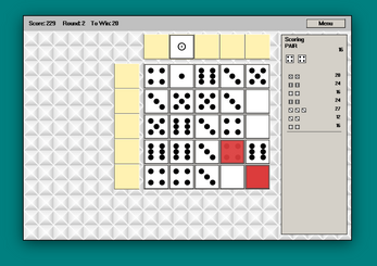 It's a game where you roll five dice at a time to fill a grid of 25 cells. Points are earned based on combinations of dice: pairs of two to five, straights of three to five, and special dice collected throughout rounds. All combinations are made in vertical columns, horizontal rows, or diagonally. You get a little MIDI fanfare if you line up all five dice in a DICEBREAKER!